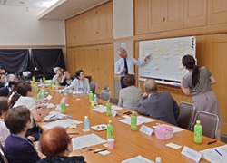 ![]() 吉田理事長を囲んで検討するAチーム |