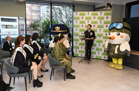 | 自衛隊東京地方協力本部(本部長 鹿子島陸将補)は11月10日、渋谷区の宮益坂にある複合ビル「AND CROSS BLDG.」3Fに新設した渋谷募集案内所『SHIBUYA JーLOUNGE』にて、オープンイベント(ファンミーティング)を実施した。