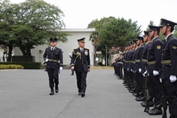 ![]() 巡閲を行い第1師団の威容を確認する堺陸将 |