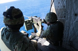 ![]() 洋上の的に向かい航空機から射撃 |