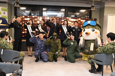 | 自衛隊東京地方協力本部(本部長 鹿子島陸将補)は11月10日、渋谷区の宮益坂にある複合ビル「AND CROSS BLDG.」3Fに新設した渋谷募集案内所『SHIBUYA JーLOUNGE』にて、オープンイベント(ファンミーティング)を実施した。