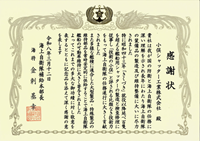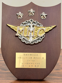 | 北区防衛協会の 小俣会長の会社である小俣シャッター工業(株)の「さいたま工場」において、海上自衛隊補給本部金刺本部長より感謝状を受賞した。 |